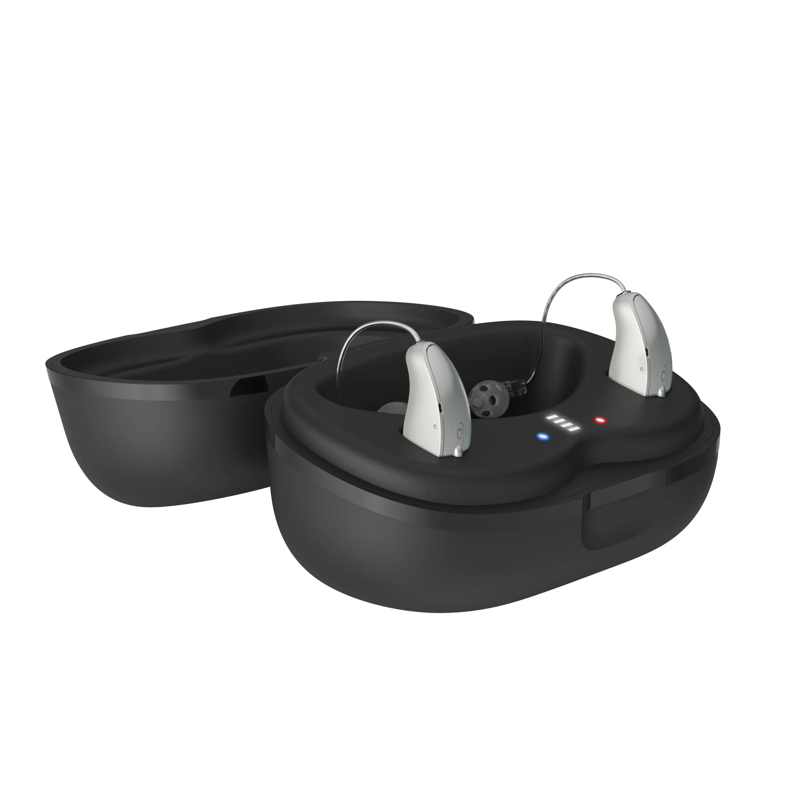 We typically recommend either a CROS or a BiCROS system. A CROS system consists of a single microphone and single receiver contained in two individual devices (one for each ear). The ear with little-to-no functional hearing is fit with the microphone-equipped device, and the ear with normal hearing is fit with the receiver-equipped device. Sound arriving at the ear with hearing loss will then transmit through a wireless connection to the receiver-equipped device on the normal-hearing ear — to help you hear sounds regardless of which side they’re coming from.
